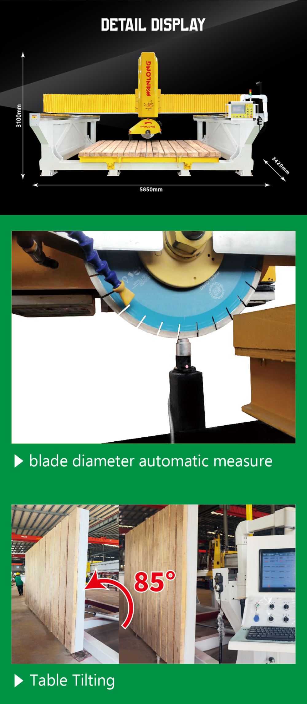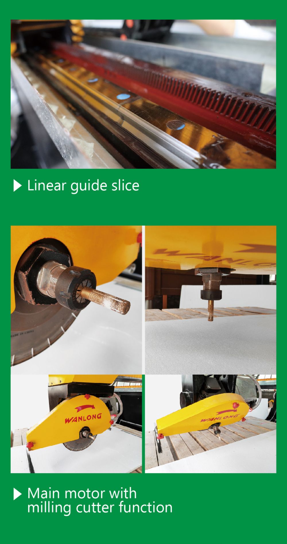 6 Main motor with milling cutter function, can process table tops, vanity tops etc