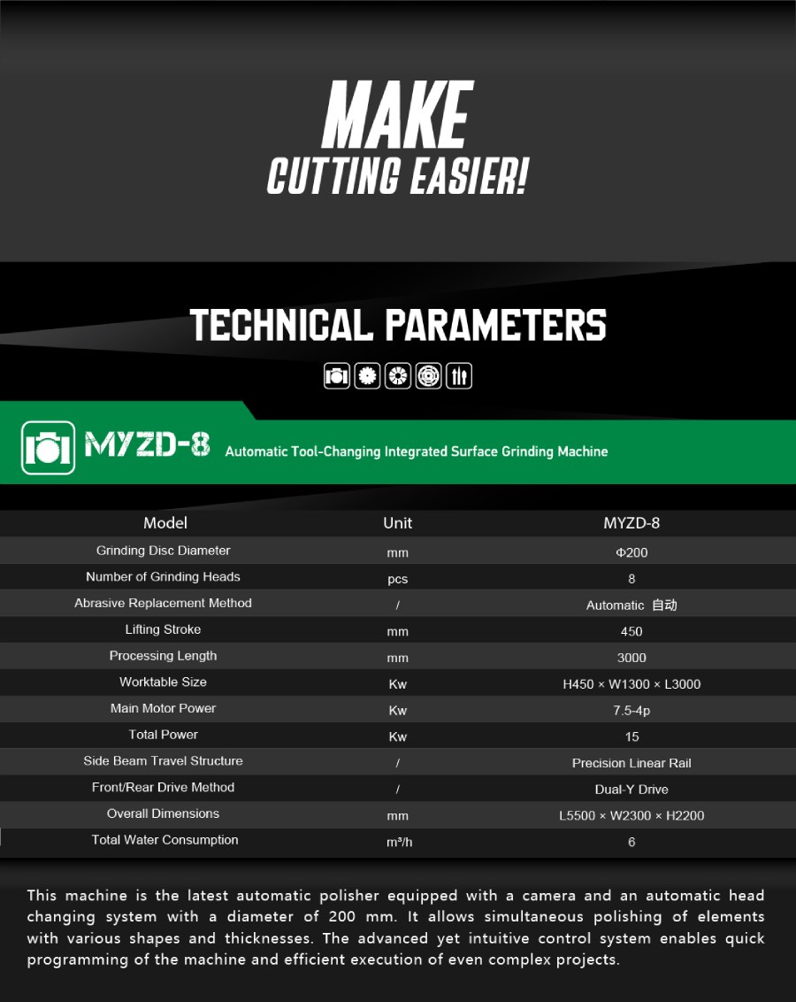 | Number of Grinding Heads | pcs | 8 |