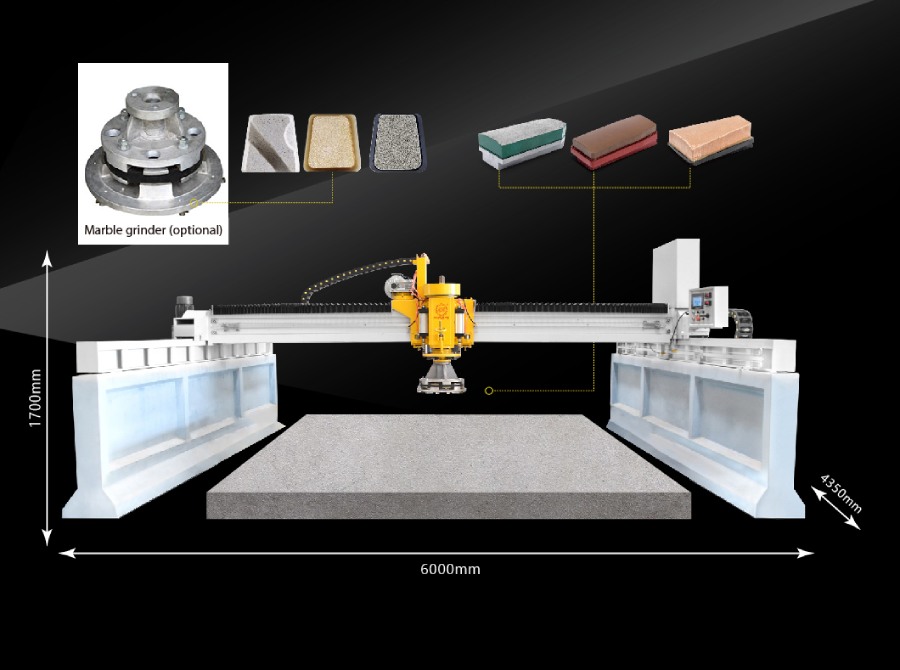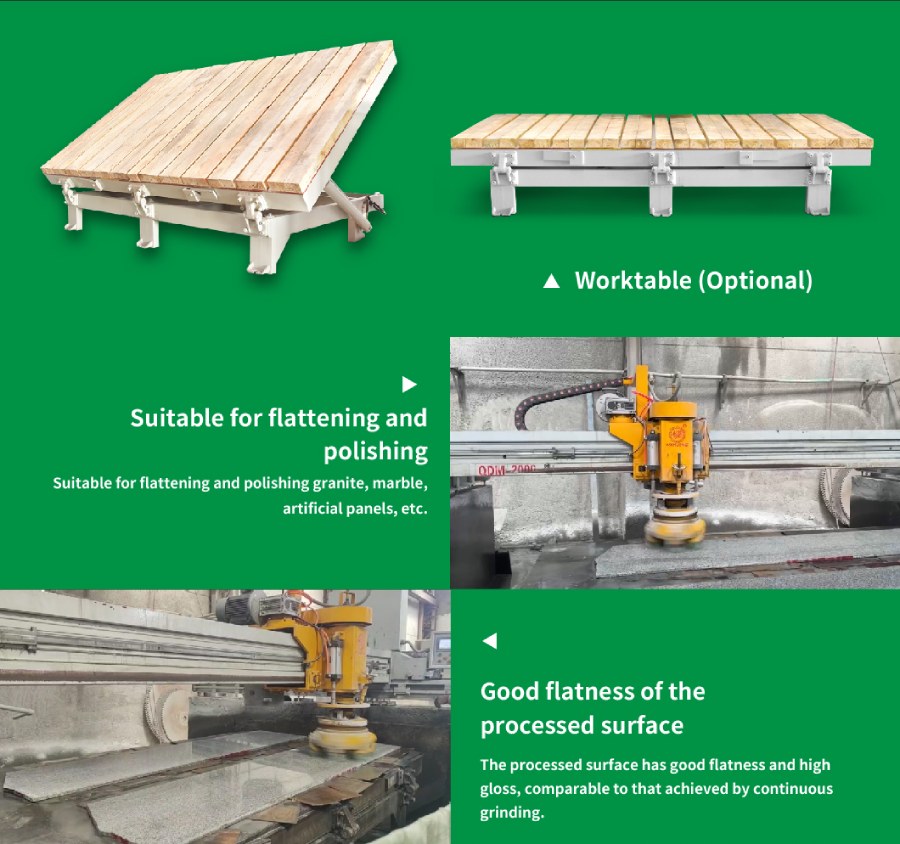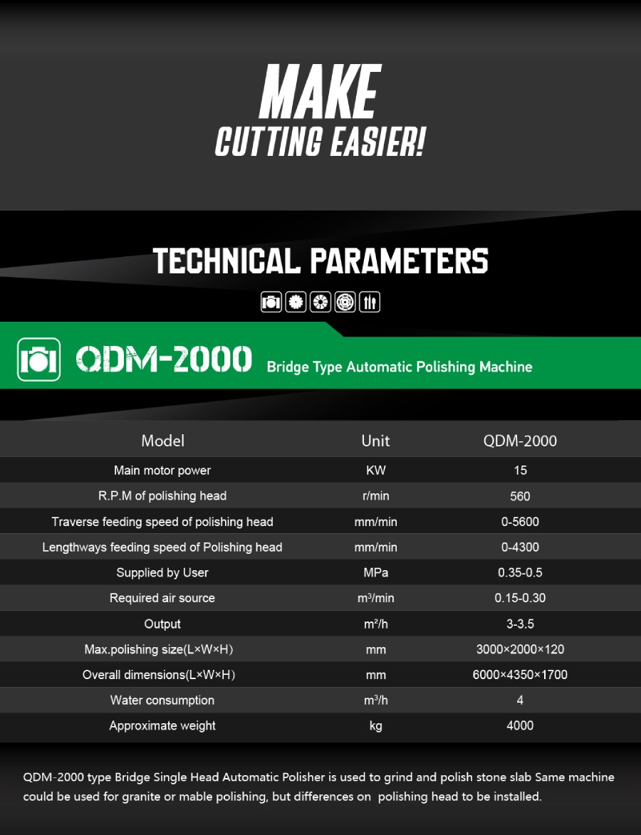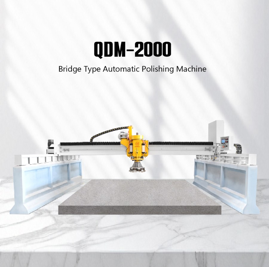 QDM-2000 type Bridge Single Head Automatic Polisher is used to grind and polish stone slab Same machine could be used for granite or mable polishing, but differences on polishing head to be installed.